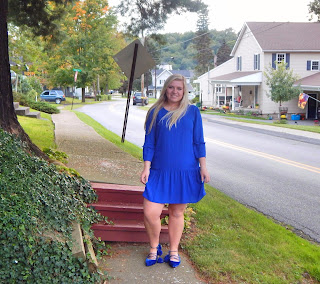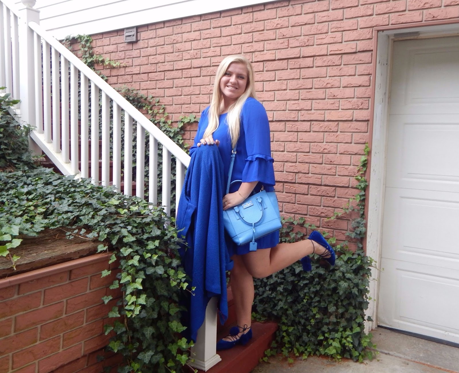 Hi there, my fellow fashionistas! I know September has set in and summer is a distant memory, but that doesn’t mean fashion isn’t in full swing. Today, I chose to focus on my favorite color and create a monochromatic look, incorporating a variety of blue pieces. Monochromatic dressing is so easy because it is just layering different shades and textures of one hue, so you can’t go wrong. I stuck with a lot of royal blue in order to transition into fall, but I love the contrast of the lighter bag. My dress features bell sleeves, which are a huge trend right now because dramatic sleeves are all over the place, and a drop waist. I think it is a great piece for this time of the year because the material is thin enough for warmer days, but provides more coverage than a summer dress. This simple dress, coat, bag, and flats combination may be just one color, but there is nothing boring about it.