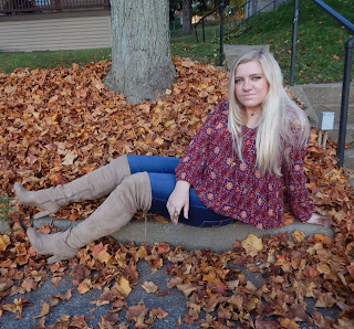Happy Fall, everyone!!! It is now the glorious season between the hot summer nights and the cold winter days…a.k.a. the season for great fashion! Fall fashion provides so many different options for your style, but, in this outfit, it is all about the COLOR! I really wanted to play with the rich colors associated with fall, like oranges, burgundies, browns, taupes, and golds. I went with a more casual look for you all since I have been posting all skirts and dresses. So, there is nothing like a good ol’ pair of jeans, styled with a printed top and some over-the-knee boots.