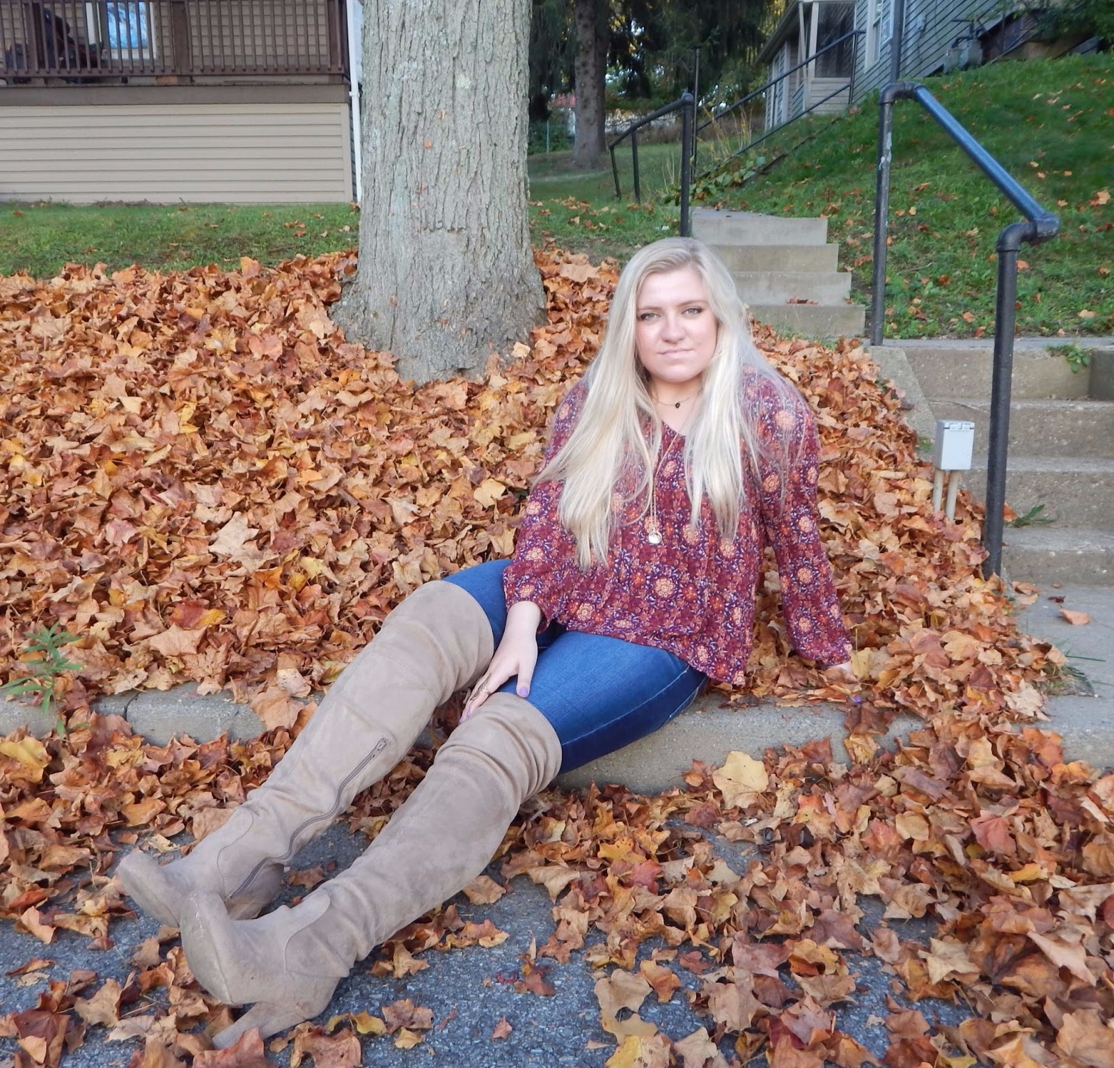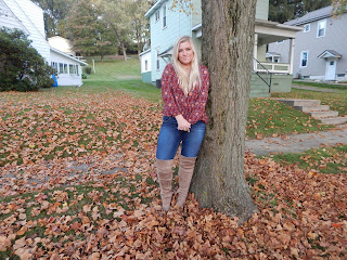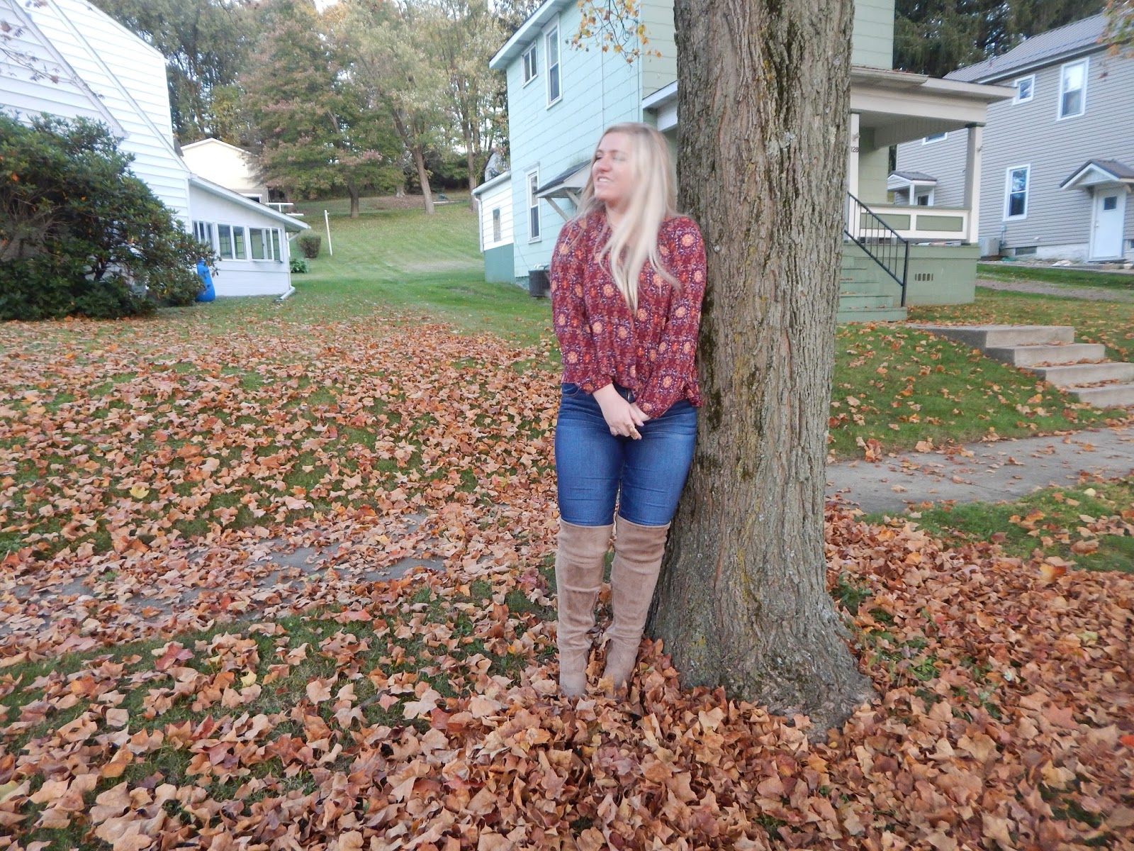 Happy Fall, everyone!!! It is now the glorious season between the hot summer nights and the cold winter days…a.k.a. the season for great fashion! Fall fashion provides so many different options for your style, but, in this outfit, it is all about the COLOR! I really wanted to play with the rich colors associated with fall, like oranges, burgundies, browns, taupes, and golds. I went with a more casual look for you all since I have been posting all skirts and dresses. So, there is nothing like a good ol’ pair of jeans, styled with a printed top and some over-the-knee boots.