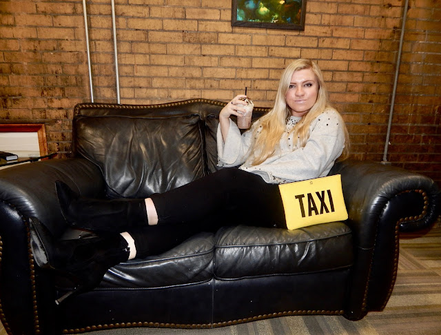 Before I start raving about my jeans, I wanted to mention my location for this shoot. The Ginger Snapped Bakery and Café in Punxsutawney was the perfect place to photograph my look because of their fun aesthetic. The exposed brick, artwork, and bright colors make for such a great atmosphere! I highly recommend popping in for sweet treats and yummy drinks. Obviously, I never wanted to put down my frozen hot chocolate because it makes a cameo in lots of shots (yes, it’s cold outside, but it is my fave drink)!