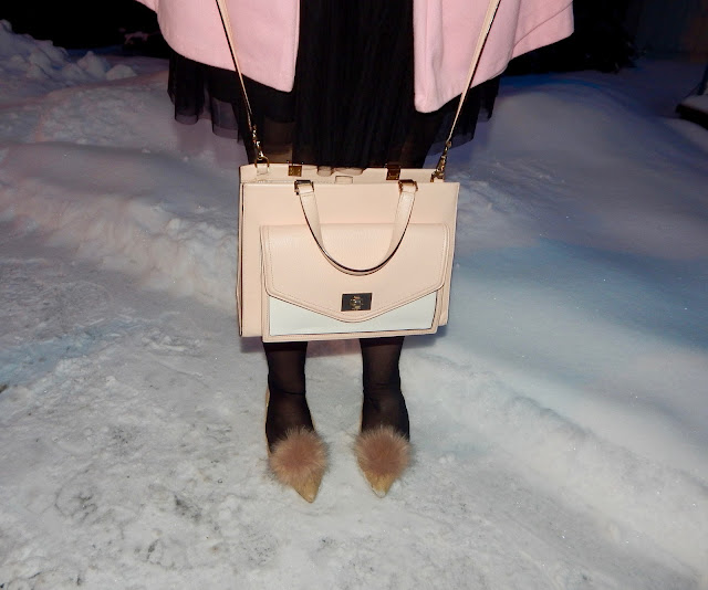 Hello lovelies! I apologize for being M.I.A. last week; it was Groundhog Day weekend and being from Punxsutawney, I took time to celebrate (plus it was freezing…not great photography weather)! Clearly, Phil was correct when he said six more weeks of winter, but instead of dwelling on the cold, I am focusing on the next holiday; Valentine’s Day! Whether you are going out, staying in, or just riding solo, you can always use a festive outfit. I chose to do a more subtle look for V-Day, wearing a black sweater with hearts, a tulle skirt, some nude pumps with pom poms, a blush purse, and a bubblegum pink coat, too. Okay, I guess “subtle” is all about interpretation! I didn’t want to wear red and pink head-to-toe (even though that is a great color palette), so I added a little black to the mix, all while sticking to a romantic theme. So, keep reading for details on how to do Valentine’s Day the oh so chic way!
