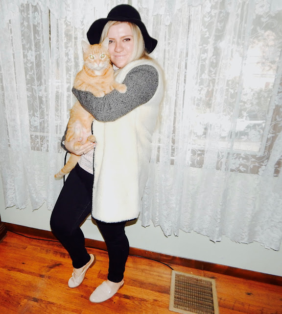 I am ending on a very good note today because I am finally giving you a glimpse of one of my kitties. I always talk about cats, but I am not lying when I say how much I love them. This week, I was shooting at my house, so both of my boys were trying to get in a pic, but only Max was willing to pose for the camera. I sense that he too appreciates fashion since he snoops around and climbs into every shopping bag I bring in the door, so it’s fitting he be in the blog! To get back to the outfit, it shouldn’t be too hard combing those closets this week since most of my pieces are simple, and the look is very flexible and can be modified to match your style. Maybe you will find some sherpa too, but if your closet fails you, then just shop the links below (almost everything is on SALE)! Feel free to comment your favorite piece from this week’s look, and also let me know if you want Max to be my new sidekick! Thanks for reading, and from me and both my cats, Happy Closet Combing!
