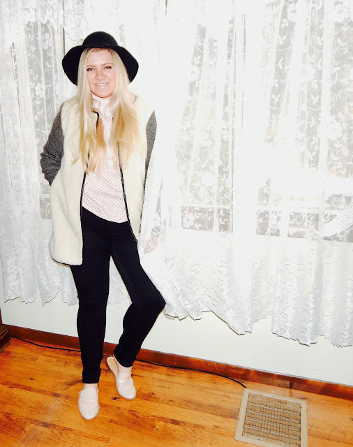 If you want to know what makes me happy, then layers is the answer. As much as I am craving summer, I love layering clothing in the cold because it allows you to be creative and expressive. This jacket is great because it does all the work for you. Notice this is one article of clothing that has sherpa, tweed, and faux leather trim. So many great things going on here! I mentioned how sherpa was a trend in the fall/winter because it was obviously featured on the runways, and I couldn’t help but see it showcased in about every clothing shop. Now I know there is often a debate, sherpa vs. shearling and what’s what, but it’s important to know that sherpa is a manmade, faux material, while shearling is true lambskin. Because I fancy faux, I love that this sherpa is kind to sheep, but it still keeps you toasty. It really has been a staple in clothing forever because it is warm, so I am not surprised that it has been popping up. Aside from the sherpa, I love tweed and fun sleeves (just check out the last blog post if you need reassured)! The tweed is a bit unexpected because, while both fabrics are classics, they are not usually paired together. It totally works, though, and the black faux leather trim really ties all the different elements together. The black pleather goes with the black in the tweed, and the ivory in the tweed goes with the ivory sherpa. It sounds a bit complicated, but trust me, it’s chic and that’s all that matters!