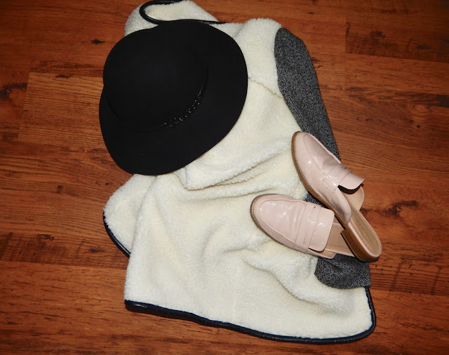 Hi there, my fashionistas! February is a wrap, and it is looking like March is coming in like a lion in Punxsutawney. All the snow and rain makes me want to curl up in cozy pieces. So this week, I am mixing some fun prints and textures that keep me warm in this crazy climate. I am wearing a sherpa jacket, a turtleneck, black jeans, mules, and a black hat to pull it all together! This outfit has some easy basics that can be found in about every closet, but also some fun extras that amp up the style. I am incorporating the fall/winter trend of sherpa because it certainly isn’t time to break out the bikinis where I am! My best advice for dressing during these “weird” times of the year when it isn’t really spring, but not the dead of winter, is to wear clothes based on the temps of the day. It’s hard to plan outfits ahead because the weather changes constantly, so simply pick out clothes that fit the forecast. Basically, the only real rule to follow is to wear what makes you happy. Okay, with my little speech over, let’s talk about these clothes!