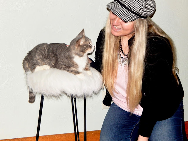My last pic features another feline friend a.k.a. my favorite nephew, Rupert (my only nephew)! I had to take over his house to get pics because it was way too chilly and rainy to have an outside photoshoot. Needless to say, Rupert was loving the faux fur props and his auntie! I think he is wondering when I am ever going to wrap up this post! I will leave you all to comb those closets for basic pieces that you can dress up with a structured jacket, OTK boots, and a newsboy cap! The perfect outfit for curling up with The Little Dictionary of Fashion by Christian Dior on a rainy April day! Feel free to comment and let me know your favorite books/magazines to read! That is all for this week, and hopefully next week I can go outside because I am ready for some sun! Thanks for reading and Happy Closet Combing!