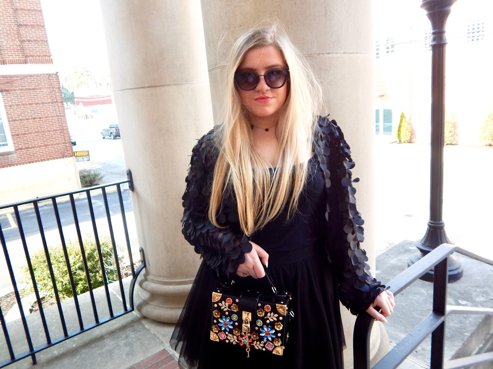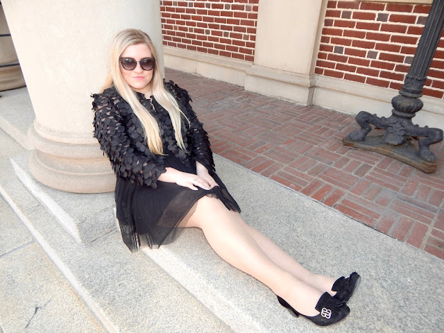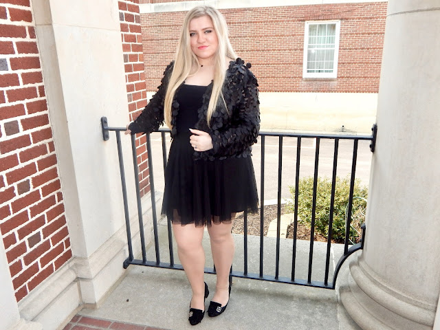 Hello there, loves! Well, it’s a new week, so that means another black jacket. This jacket is special, though, because it is part of another sewing segment (and because I put my blood, sweat, and tears into it, obviously)! Besides, tis’ the season for layering, so you can’t blame a girl. But, let me just say that it was finally sunny and warm in Punxsutawney. I have to tell ya; it was so refreshing to go outside and not freeze to death! However, the fun in the sun didn’t last long because I am bundled up as we speak. The weather was perfect for this look because it was just the right temperature for a light mesh jacket, camisole, tulle skirt, block heels, and a bejeweled purse. You can always add more layers if it happens to be cold, so you don’t have to worry about refreshing your weather app every 5 seconds. But, warm days are always ideal conditions. Am I right?! To break things down, the jacket is the only piece I made and you can purchase the rest of the look, for those of you who prefer “adding to cart” instead of your sewing list! Trust me, sewing lists exist when people find out you know how to work a needle and thread (or…umm..mostly work a sewing machine). For my seamstresses out there, thread those bobbins because I am going to tell you how to make a fun, statement jacket, and tell you how to style it, of course!