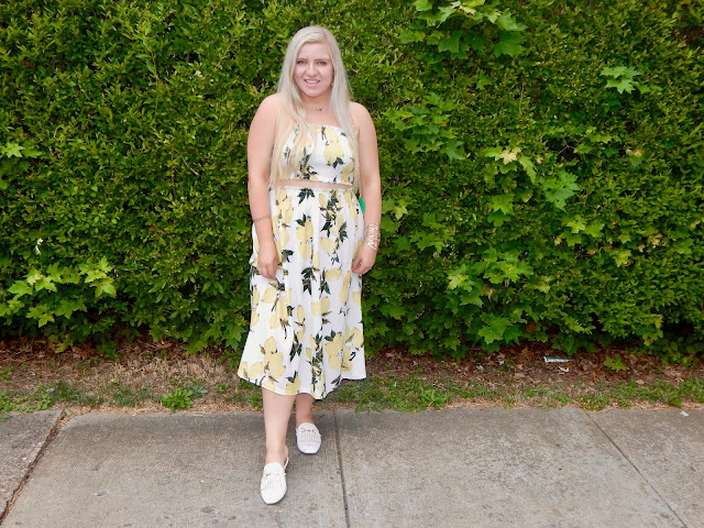 I am feeling like I am being very longwinded in this post, so I will try not to babble too much about the rest of my look. The camera had a little trouble focusing, but I knew I had to mention these lemon earrings. They are little gold hoops that have leaf charms and lemons dangling from them. I love them because it is clear to see that they fit my theme, and they are so lightweight! As much as I love earrings, I often wear studs because I hate heavy earrings that feel like they are pulling my ears. But after I put these on, I never wanted to take them off! My shoes are my white mules that I know I have worn at least once in my posts. I wear my mules as much as my sandals and boots because they are easy to slip on and are so very chic. I haven’t tallied how often I typed the word, “trend,” but get ready because I am going to say it again! These shoes are extremely with the times, so yes, these mules are trendy and you need them in your life. However, you can wear wedges, sandals, ballets flats, or even canvas sneakers if you want to add personal flair!