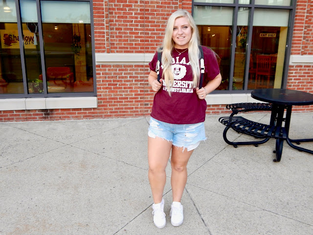 If you scroll through my blog posts, or if you know me personally, then you know I am not much of a t-shirt girl. They just usually aren’t my style. However, this does not mean that I don’t own a thousand that I’ve collected, mostly from high school days with different events and clubs. So now you know I am a t-shirt hoarder, too! Despite me not wearing them often, I believe everyone needs tees in their life. They really are classic and simple, and with all the athleisure hype, all the fashionistas are wearing them. And why wouldn’t you wear a tee? They tend to check everyone’s favorite box, comfy! Along with their comfiness, you can find so many tees with fun sayings, prints, and you can rep your school! If I am going to wear a t-shirt, I am most likely wearing my Indiana University of Pennsylvania tee (IUP). College shirts are definitely my most loved because they are a fun way to show school spirit. Plus, some schools have super cute merch, like mine! I love this shirt because of the lettering, and especially the seal that features the highlights of the university. College shirts make such a statement in fashion because they represent an unforgettable era in the lives of many—a time where you find yourself, where you grow, and where you meet people who give you a whole new outlook on life. Collegiate clothes/college-inpsired clothes were actually a trend seen in magazines and on street stars because they are clothes that people can relate to, as opposed to $1,000 sweaters. Too, they can remind the working woman of how far she’s come. I encourage everyone who goes to college to invest in some school apparel because even if you don’t wear it, I can assure you that when you turn it into a sleep shirt 5 years later, or if you keep it stuffed in the back drawer, or if you bust it out to fit in with the latest trend, it will make you think of all of the memories you made, and how much more life has to offer!