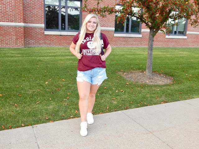 I had to close with a picture of me and my Kate Spade planner that reads, “She’s always running fashionably late,” because most of the time, that’s true! I make it a priority to not be late to class, but everything else, I will probably show up fashionably late! Do you guys get to class early, or do you show up mid-lecture? Also, leave a comment and let me know what school you go to? Like I said, I go to the Indiana University of Pennsylvania, and I am a sophomore at main campus (but I took these pics at the regional campus in my hometown of Punxsy—the campus I attended my freshman year). I am just trying to enjoy every minute of college because I know it goes by fast! Even if you don’t go to college, or you are out of college, this post is for you too! Comb those closets for tees from your alma mater, your high school, your job, or your favorite college football team. These days, t-shirts are everywhere, so you have lots of options! Just don’t forget your denim and sneaks to top of the look! And if you are headed to class, grab a backpack that is sure to earn you an “A” for style! If you are too busy hitting the books, feel free to shop my links below! Here’s to a great semester, and Happy Closet Combing!