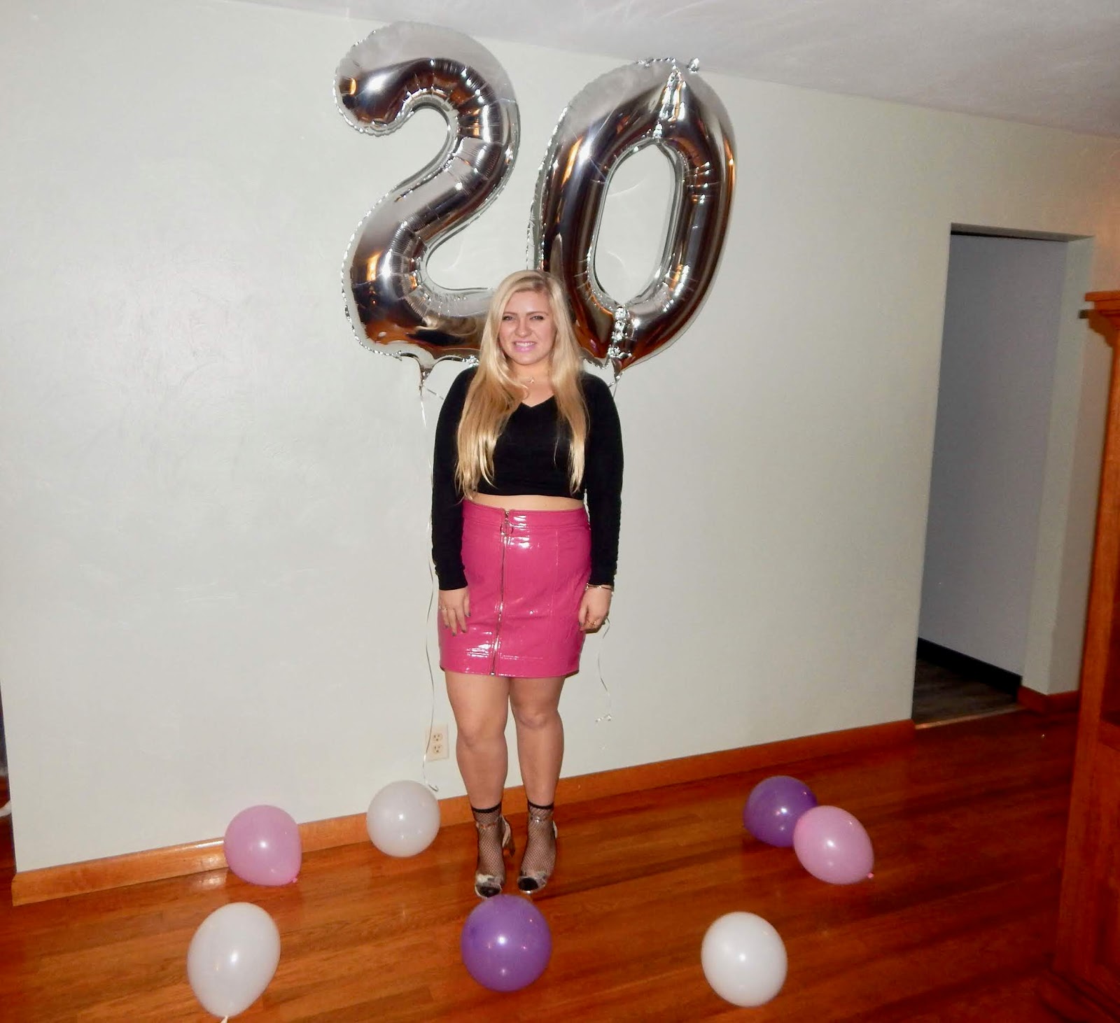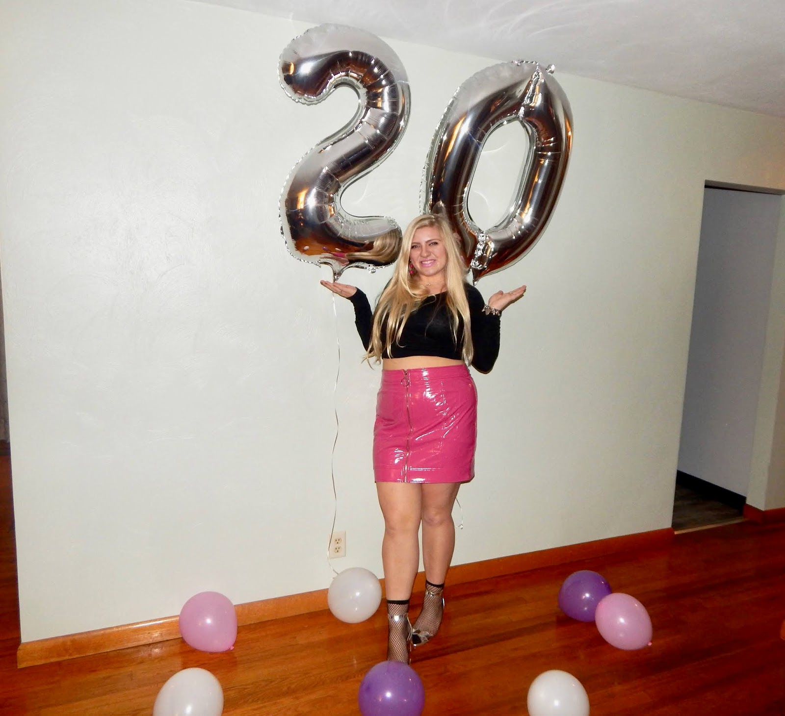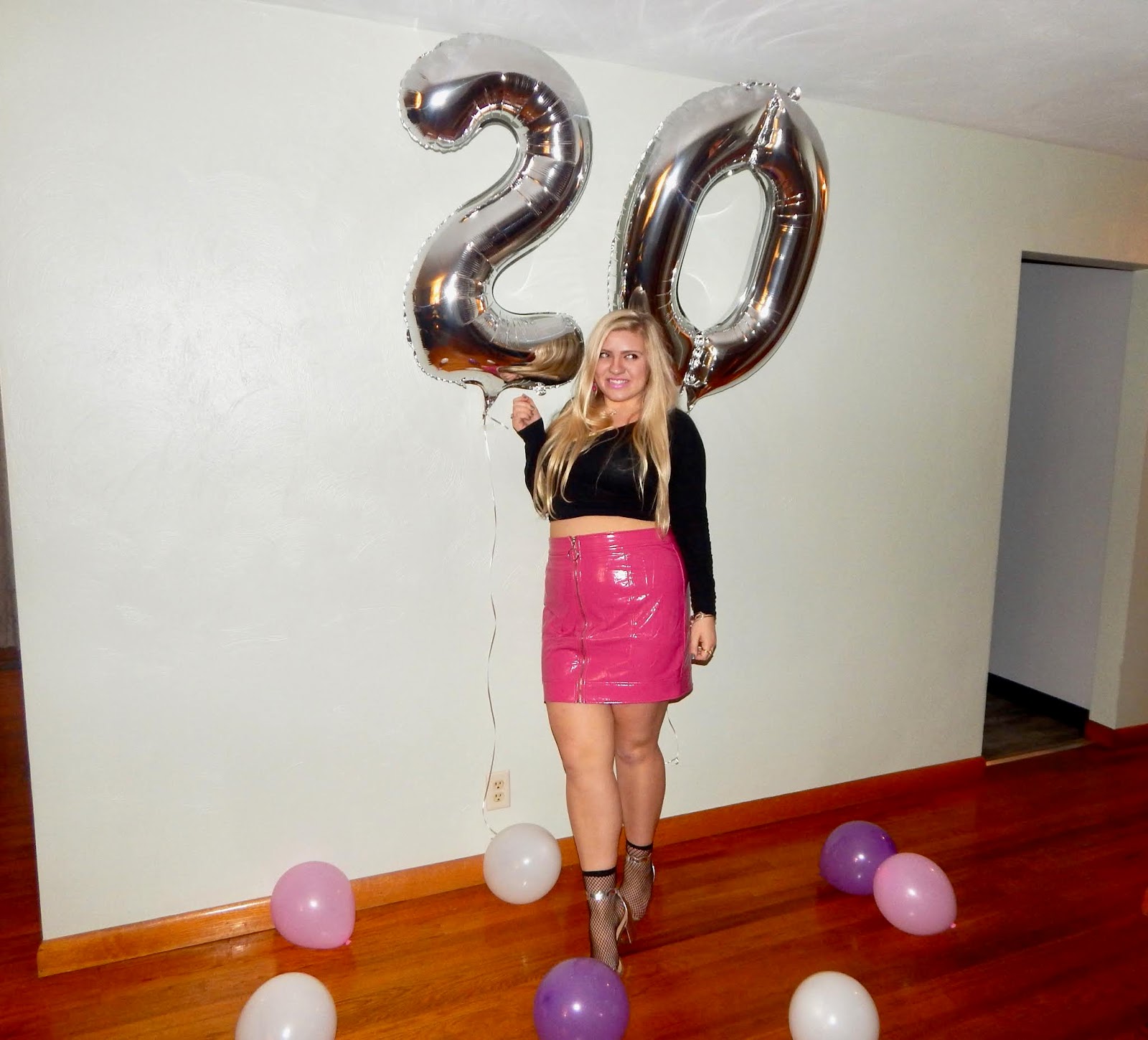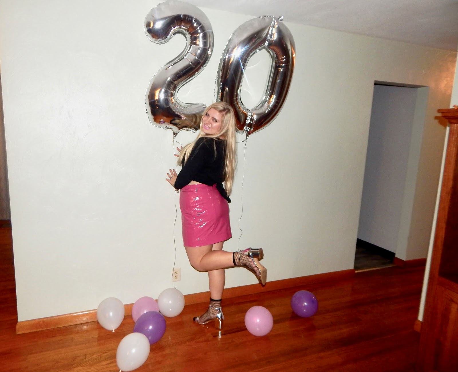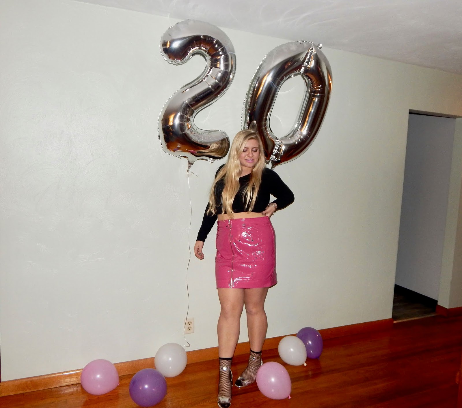 Hey there, lovely people! I feel like it has been a while since I have posted, but a lot has been happening these past few weeks. The semester is getting crazier by the minute and that means I am busier than ever. In the midst of all my hectic schoolwork, I did manage to turn 20 years old last week on November 10th (in case the décor didn’t give it away)! I was actually going to make a post reflecting on my teen years, but I decided to leave the pimples, flower headbands, and awkward selfies in the past (in my defense, that was mostly my early teens, except the pimples…they always like to pop up at every inconvenient moment)! As much as I like to look back, I like living in the present the most! But if you want to know the one thing I found most important as a teen, that is to be unapologetically yourself at all times. Cliché? 100%! But it is also so true! Another thing that is most definitely unapologetic is this outfit I chose for my big 2-0! I wanted a fun look to ring in a new phase of life, so I chose a black top that I converted into a crop, a patent leather skirt, some fishnet socks, and block heel sandals. Of course, I couldn’t forget the balloons, either! I went on a mad chase to find these number balloons in my tiny town of Punxsutawney, so you better believe they are in every single shot, except the shoe close-up! Balloons or no balloons, this outfit is asking for a good time, so keep on reading because the party is right here!