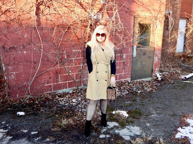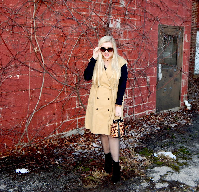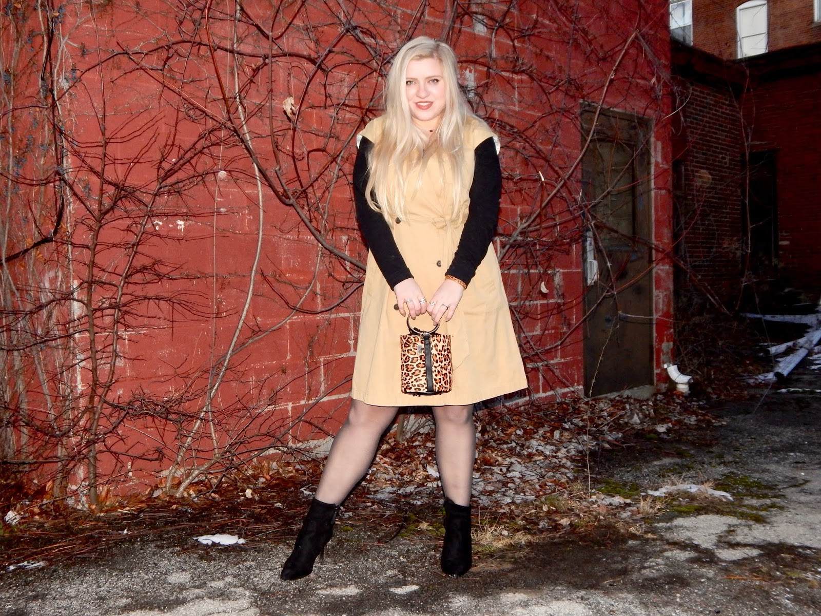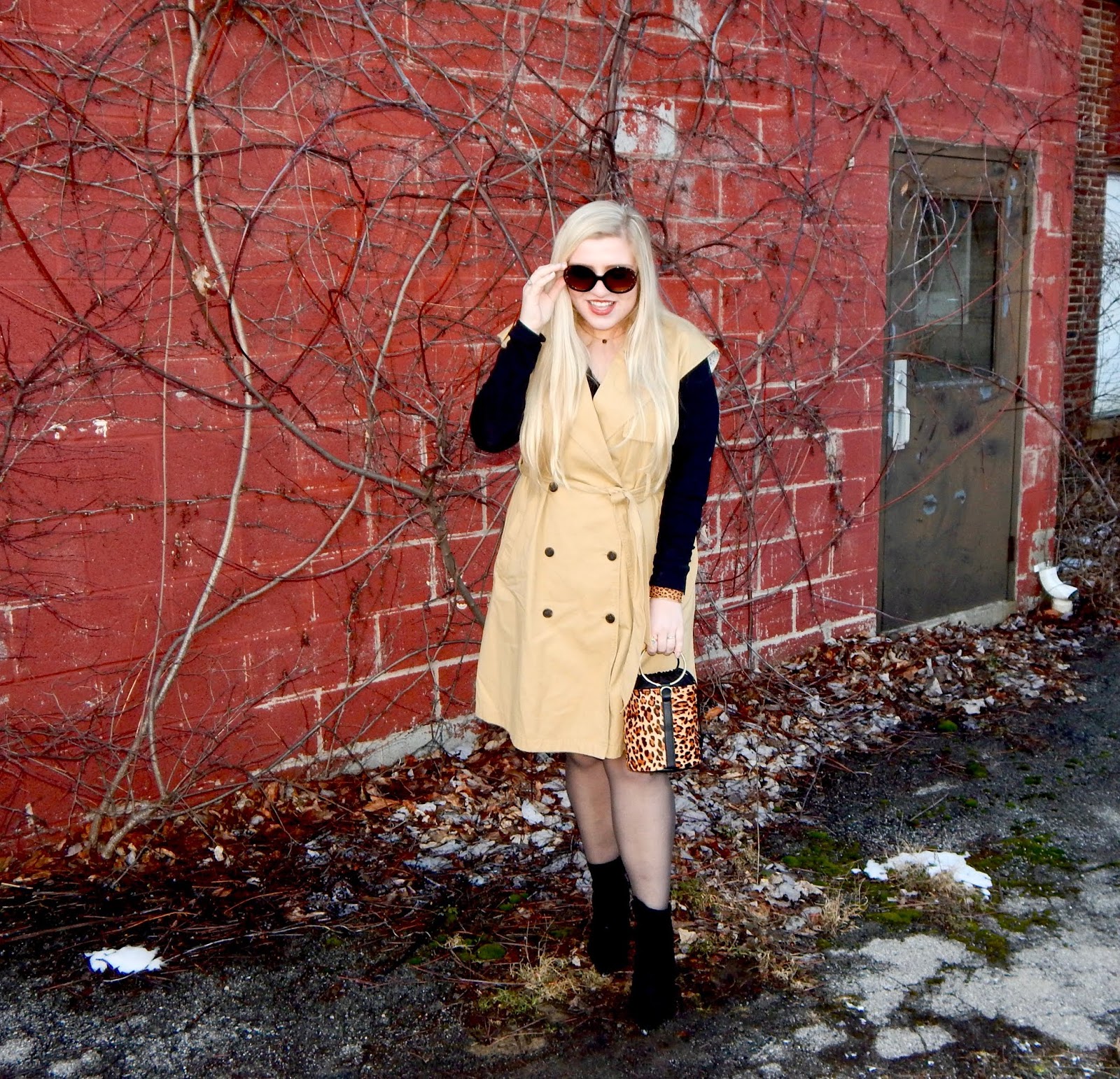 Hey there, lovelies! All is back to normal this week with a regular fashion post! Writing about style is my true passion, but I am also a skincare junkie, so I did have a lot of fun with my review. I am excited to be back in actual clothing, though, instead of wearing pajamas on the blog and in real life. I came down with the sickness that literally everyone has, and most of last week consisted of me moping around my house in pjs, with a tissue stuck up nose (my family likes to refer to me as looking like a “walrus” with my Kleenex hack, to give you a visual). It is such a good feeling to get dressed after lying around for a few days! My sniffles still weren’t quite over, but I sucked it up, buttoned my dress, zipped my shoes, and headed outside. I wore a black long sleeve shirt layered under a trench dress, put some sock booties on my feet, and accessorized with a leopard print bucket bag and bangle. I love this look because it is so chic, unique, and a little edgy. After all, it is the kind of mix of classic and urban that I was going for to fit my backstreet vibe. I have to admit that I had no idea what I was going to title this post, and while I was racking my brain for a catchy title, the song, “I Want It That Way” by the Backstreet Boys came on my Spotify, and I became inspired! I mostly like the title because I truly was running the backstreets of Punxsutawney to scope locations! And if we were to be honest, those guys wore black and and trench coats, so they would probably appreciate this look. My intention wasn’t to mimic the style of boy bands, but if you keep reading, I can give you style tips on how to dress like a backstreet babe in 2019!