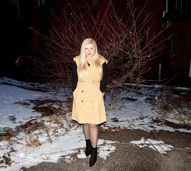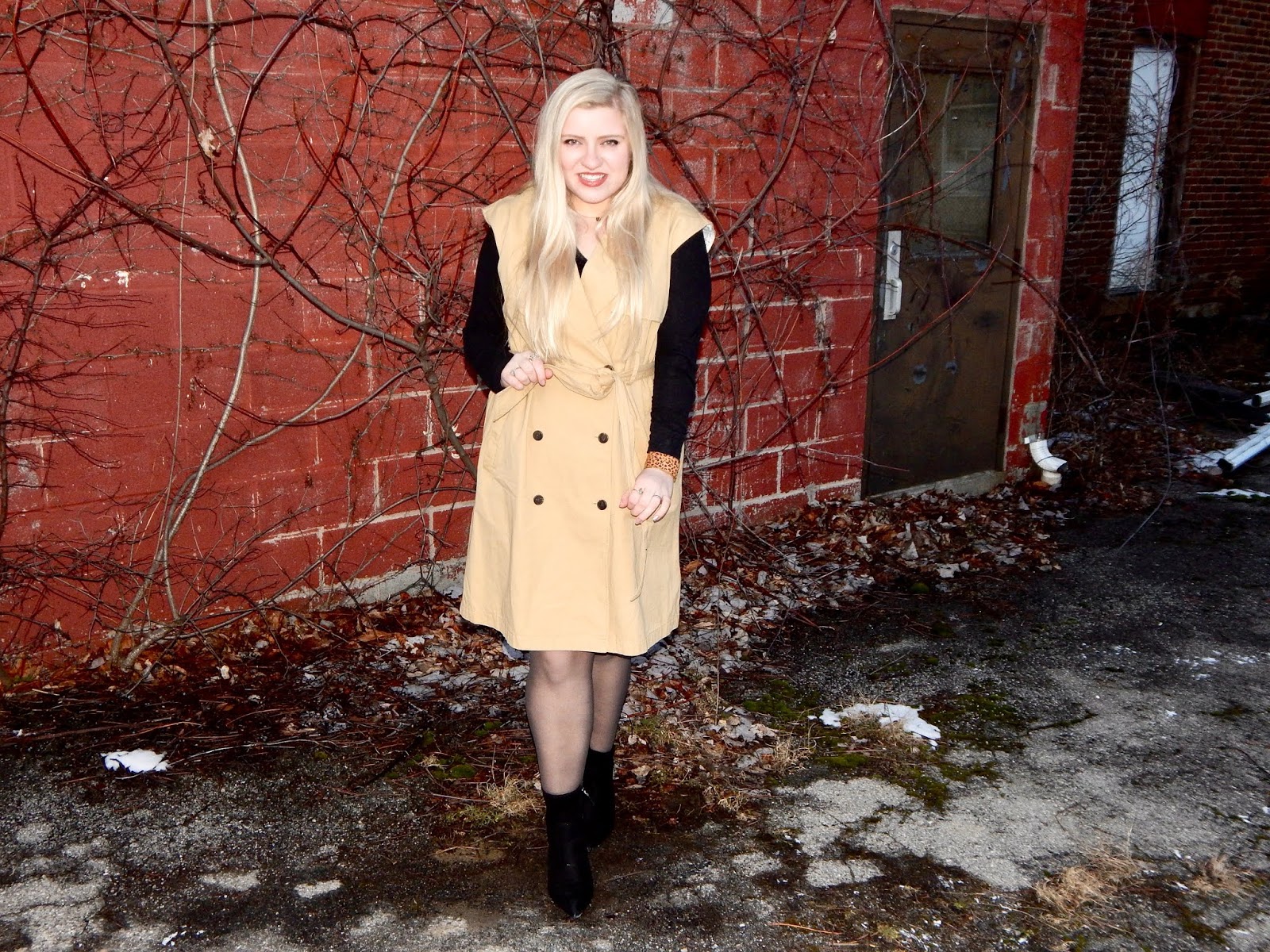 The trench coat is such a timeless, iconic piece that is a staple in the closets of fashionistas from all over. The trench dress, however, is a different take on the quintessential outer garment. It is the article of clothing I never knew I needed until I saw it hanging on a rack, in all of its glory. Of course, Meghan Markle stunned in a trench dress that was a similar style (though her’s was longer and more of an oatmeal color), and if it is good enough for royalty, then it is good enough for me! Whether or not Meghan donned a trench dress, I will always be a huge fan of them. The piece exudes sophistication with its double-breasted buttons and exaggerated lapels. Because of the belt, you can cinch and define the waist, creating a flattering silhouette to show off your figure. I love the length of this dress because it hits right above the knee, so it doesn’t lose its elegant roots, but it remains very fresh and current. The color is, in my opinion, a bit darker than the typical khaki associated with trenches, but it’s another small twist that sets it apart. My favorite feature of this dress is the fact that it is sleeveless. I have come across trench dresses before, but when they are long sleeved, I honestly mistake them for coats. This sleeveless characteristic enables you to differentiate and also wear this in different seasons. In frigid January, I embraced the concept of layering by adding a black shirt underneath. I love the look of the black peeping through because it adds so much contrast and dimension. In a few months, when the sun is shining and the temps are warmer, you can fit this into your spring wardrobe by ditching the undershirt and throwing on some wedges. No matter how you look at it, this is a versatile garment—it is effortless to style for numerous occasions and is so classic that it can be worn for many years to come!