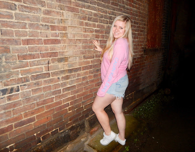 Hi lovelies! Happy June! Once this month hits, I feel like summer is pretty much in full swing around here. Our local pool opens, the ice cream truck is back on the streets, and of course, the summer solstice occurs. Though June is full of fun in the sun activities, the weather in Pennsylvania hasn’t been so bright. Lately, the forecast has called for tons of rain and chilly temps (it was only 60 degrees today)! Unfortunately, I have had to break out my crewnecks and leggings again, but I am staying positive that the sun is coming my way soon. In the meantime, I wanted to wear a cute, casual outfit that was somewhat warm, but didn’t scream polar vortex. I chose the comfiest pink top from Calvin Klein, distressed denim cutoffs, and my go-to white sneakers that are becoming a symbol of the blog at this point! This look feels fitting for the season with the bright colors and laid-back vibe, but it also keeps you cozy on chilly nights (or days). Wear it to a bonfire, throw a swimsuit on underneath and wear it to the beach, or even wear it to a back alley if you want! I love the versatility and ease that comes with summer clothes because you have more freedom to switch up your looks and style them in different ways (Yes, layering is always fun in the winter, but most of the time, you just can’t wait to get next to a heat vent). Keep on reading for details on how to style these pieces, and no matter rain or shine, you will be feelin’ fine in Calvin Klein!