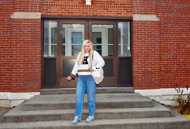 Hey lovelies! Well, fall is officially here, and whether we like it or not, that also means school is in full swing (in other words, syllabus week is over and the assignments are piling up at a rapid pace)! If you’re still in middle school, high school, college, etc., and even if you are a grad, you all know that back to school feeling—excited to see your friends, but dreading the homework! Though I’ve always been a “straight A” student, I remember saying I only liked school the first and second days of Kindergarten and that was it (hahaha)! However, there is always one activity associated with “Back to School” that I am more than happy to participate in…shopping! I love getting fun stationery, supplies, apartment décor, and of course, clothes! Even as a Junior in college, I still look forward to hitting up the mall with my parents to look for new outfits for the upcoming semester. Honestly, I don’t know if it is still acceptable to go “Back to School” shopping after you graduate, but I can guarantee you that I am going to do it anyway! So, before my classes started, on one of my latest retail excursions, I spotted this adorable Tommy Hilfiger sweater and jeans (and bought them, of course), and I chose to pair them with my denim platforms and my Coach backpack. I love this outfit because it is definitely collegiate inspired, putting a modern twist on student staples. Hilfiger’s classic design is taken up a notch with A+ details on both the sweater and denim. An ensemble like this is obviously perfect for class, but it honestly is just great for all kinds of activities such as grabbing lunch with your friends, going to a football game, or doing whatever it is you do all fall! If you are a student, graduate, working girl, fashionista, or all of the above, keep on reading for styling that is no doubt best in class!