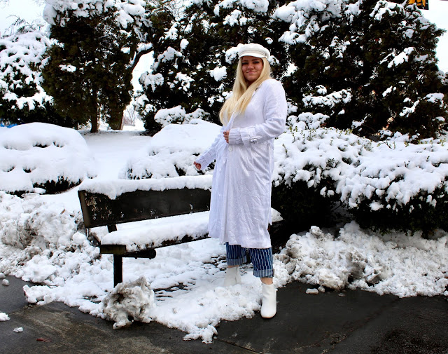 It’s no secret that I love a good hat. In fact, you’ve seen this newsboy cap on multiple occasions. For as much as I wear it, I am surprised it is still white…ish! Actually, this hat is technically ivory, but the difference in shades is super subtle. Plus, you wear a hat on your head, so it isn’t right next to the garments—don’t fret if it doesn’t match up perfectly! Hats are an appropriate accessory, especially during the chilly months, because they can keep you cozy. Mine doesn’t necessarily keep my head warm, but I have lots of hair that serves as great insulation (haha)! I chose to wear the newsboy cap because it fit the “classic,” preppy aesthetic I was going for. Newsboy caps are a great investment as you can style them for every season, just like in my previous blogposts. Don’t let the white color make you believe that you can only wear this in the spring/summer, because fashion “rules” are meant to be broken. Think of it this way; if no one pushes the boundaries, we would all be walking around in boring clothes. But, again, if you are a “rule-follower, “remember this is still all perfectly legal! So, you can reach for white booties like me, even after Labor Day! Booties are my go-to all winter long because anything with a block heel is easy to walk in, even in the snow and slush! Luckily, my shoes are a vegan leather, so they are super easy to wipe off if the weather isn’t ideal. If you want to switch things up, then try a white beanie or beret for added warmth and keep your shoes simple with a white sneaker or an edgy combat boot!