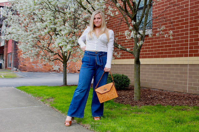Hi babes! Hope you’re holding up in this heatwave! If I’m not by the pool, you can definitely catch me by a fan these days! I’m honestly sweating looking at my outfit for this post, but the best part about summer is that you style clothes to fit the temperature. Long sleeves with shorts, jeans with a cropped cami, and dresses and skirts too…there’s no limit to what you can do this season (unlike winter when there is one temperature and one style: freezing and bundled up)! I am FINALLY caught up on my spring content and am transitioning into full-blown summer mode after this, though neutral pieces like these are perfect all year! So no need to think I’m “cheugy”because this ensemble is right on trend, making me never wanting summer to end! This fresh ‘fit consists of a white button-front top, wide leg denim trousers, and some vintage leather accents to top it off. Neutrals never looked so good! Keep reading for style tips on how to capture this effortless vibe, because if you wanna dress like a free spirit, this is where to hear it!