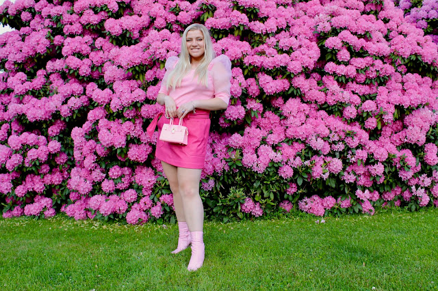 Hey babes! Do we have some catching up to do! At this point, that should just be my slogan because I always find myself taking long breaks from posting, but definitely not because I am sick of ‘The Comber. Trust me when I say I would rather be blogging, but we all know how life unfolds all at once. For a quick-ish recap, I am currently writing this blog while staring at skyscrapers out my window. Btw, I know what you’re thinking, and no it’s not New York (yet!), but I did move to Pittsburgh. Literally over the course of one week over the summer, I finally made the decision to pursue my graphic design certification, scheduled classes, found an apartment, and finished out my job for the summer. Then, over this past week, I went to the beach, came home, and moved early in the morning next day. I don’t think there is enough tea in the world to keep me energized at this point! A fun outfit, however, is sometimes all the recharge I need! Talk about a pink power up with this puff sleeve top and faux leather skirt paired with a pink boot and purse for the ultimate monochromatic look. The flowers were also very on theme, and while it is definitely a summer vibe, the calendar and weather is still saying summer to me. So before you grab your fall ‘fits, don’t be tardy to the Garden Party!